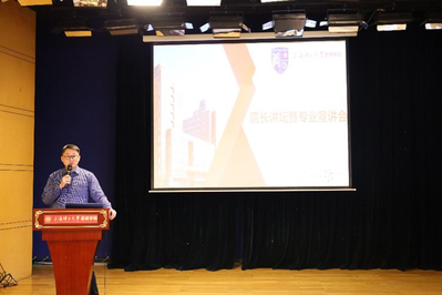4月9日下午,管理学院“院长讲坛暨专业博览会”在军工路1100号基础学院举行。管理学院院长赵来军、副院长张峥、信息管理与信息系统系主任樊重俊和系副主任刘勇、系统科学系副主任奚宁、交通工程系副主任刘魏巍、辅导员办公室和教务办公室成员以及全校不同专业大类的1000多名2020级本科生参加。“院长讲坛暨专业博览会”设一个主会场、一个分会场和线上同步直播。论坛由副院长张峥主持。