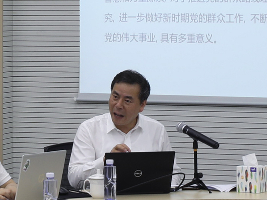 盛春以“学史明理悟思想,立德树人办实事”为主题,围绕群众路线展开党史学习课程。首先,他深入阐释了何为群众路线、为什么要走群众路线以及群众路线从哪里来的问题,并结合中国共产党早期在上海探索群众路线的历史经验及启示,指出党百年的奋斗的历史就是走群众路线,为人民群众服务的历史。新时代的党员同志要树立正确的党史观,切实为群众办实事、解难题,开展好“我为群众办实事”实践活动。他以学校正在推进的包括打造湛恩故居纪念馆、建设智慧校园、南北校区联通等项目为例,阐明了党史学习要体现在办实事上,学校正是以为师生办实事作为党史学习教育的着力点,切实解决师生在学习和工作中遇到的问题,为师生服务。他强调,坚持群众路线就是坚持一切为了群众、一切依靠群众,就是坚持从群众中来、到群众中去,这是从党百年奋进的历史经验中总结出来的,也是每位党员应当传承并发扬的。他提出,每位党员都应当深刻理解“学史力行”的含义,学习党史并身体力行,以点滴行动关心身边群众,弘扬党的优良传统。最后,他肯定了管理学院为师生办实事的众多举措,希望学院师生党员为学院、学校的发展共同努力,以优异的成绩迎接建党100周年。