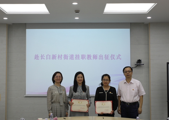 作为管理学院与长白新村街道合作的重要内容之一,学院派许静和张丽霞两位老师赴长白新村街道挂职。长白新村街道党工委副书记、办事处主任黄春怡和管理学院院长赵来军为挂职锻炼的两位老师颁发聘书。
