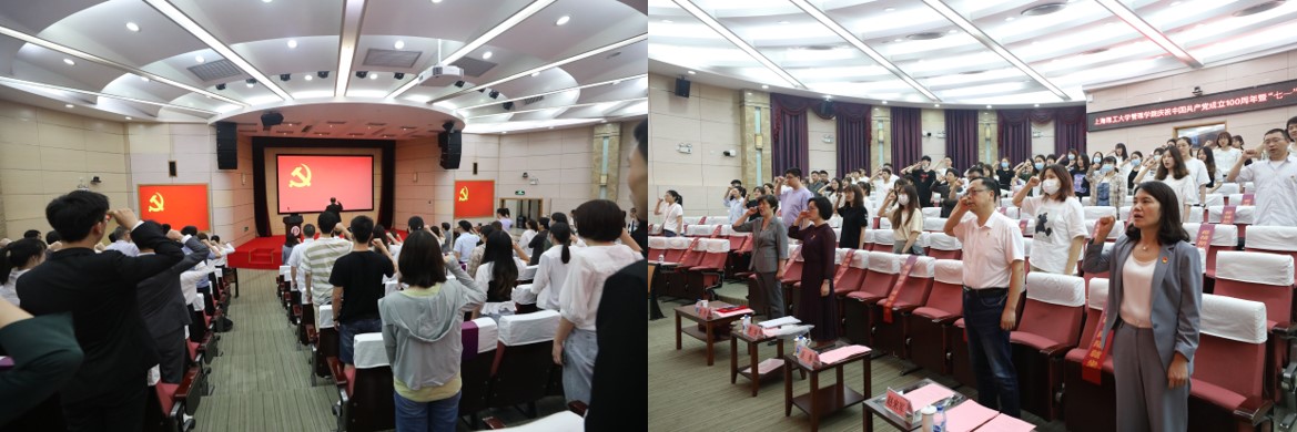 盛春向受表彰的优秀党员、优秀党务工作者和先进基层党组织表示热烈的祝贺。他指出,在党百岁生日来临之际举办这样的活动非常有意义。回顾历史,展望未来,庆祝这一路走来我们党所取得的丰功伟绩,同时树立典型,激励作为,扬帆起航再出发。管理学院党委在服务人才培养、科学研究,服务学院和学校的发展上发挥了重要的引领作用,牢固树立以师生为本的发展思想,为师生办实事方面也做了大量的工作。他希望党员同志们,以典型为榜样,学好党的历史,记好党的宗旨、记牢党的使命。最后,由盛书记领誓,全体党员重温了入党誓词。