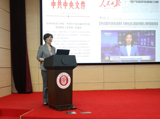 表彰大会开始前,汪维作为主讲人组织与会党员学习了《中国共产党普通高等学校基层组织工作条例》。她指出,新修订的《中国共产党普通高等学校基层组织工作条例》是对高校基层党组织工作作出全面规范,是新时代高校党的建设的基本遵循。全院党员干部要切实提升政治认识,切实提升基层党组织政治建设和组织建设成效,以勇于奋进的精神状态,迎接建党100周年。