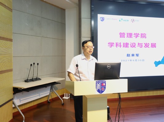 管理学院院长赵来军从管理学院学科发展现状、各学科评估情况、学科职称工作情况、十四五学科发展方向四个方面展开主题发言,介绍了管理学院学科建设与发展。他在报告中强调了人才培养和国际化的重要性,同时指出,管理学院将秉承系统思维、需求驱动、学科协同发展、人才强院、内涵发展、国际化的发展战略小步快走迈进国际一流商学院行列。