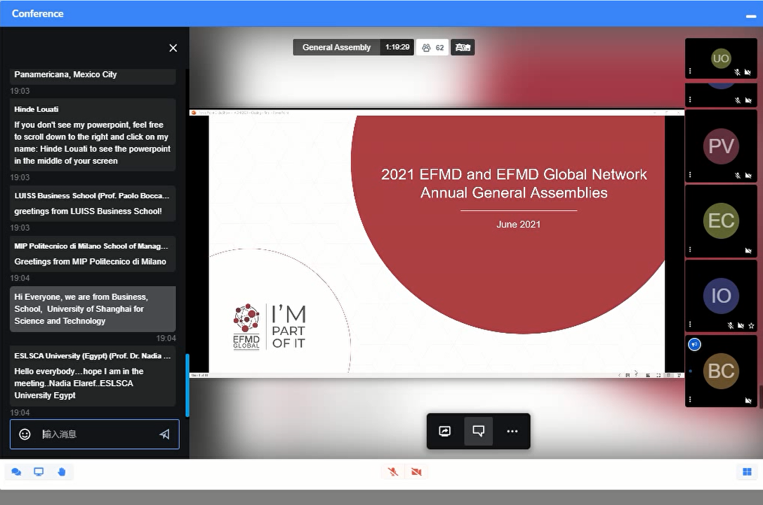 我院于2020年12月经EFMD 和EFMD GN会员审议委员会通过成为EFMD 和 EFMD GN正式会员(Full Membership),这是我院首次以会员身份参加EFMD 和 EFMD GN全球年度大会。原定本届年度大会2021年6月线下召开,受疫情影响,调整为线上召开。通过参加此次会议,进一步提升了管理学院的国际知名度,密切了我院与其他国际知名商学院的交流和联系,为寻求更高的国际合作机会和EQUIS认证工作奠定了良好基础。