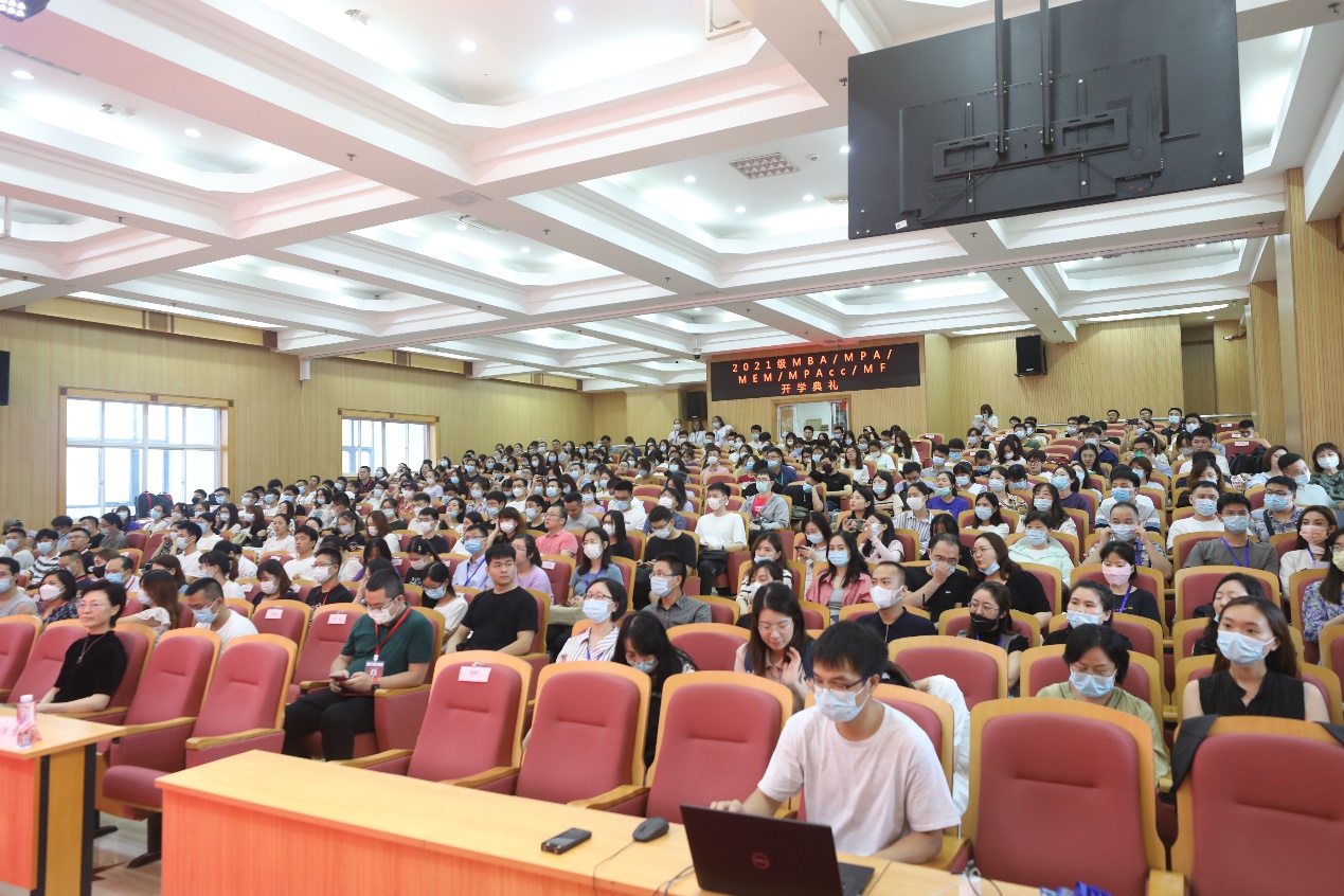 9月11日下午,乐鱼网页版2021级MBA、MPA、MEM、MPAcc、MF新生开学典礼在管理学院第一会议室隆重举行。副校长刘平,研究生院常务副院长、学科办主任艾连中,管理学院院长、专业学位教育中心主任赵来军,学院党委书记汪维,副院长、专业学位教育中心副主任张永庆,副院长、MBA项目主任张峥,副院长何建佳,党委副书记蒲莹莹,以及MPA项目主任车丽萍,MEM项目主任叶春明,MPAcc项目副主任于谦龙,MF项目主任孙英隽,任课教师代表和全体MBA、MPA、MEM、MPAcc、MF新生参加了开学典礼。开学典礼由张永庆副院长主持。