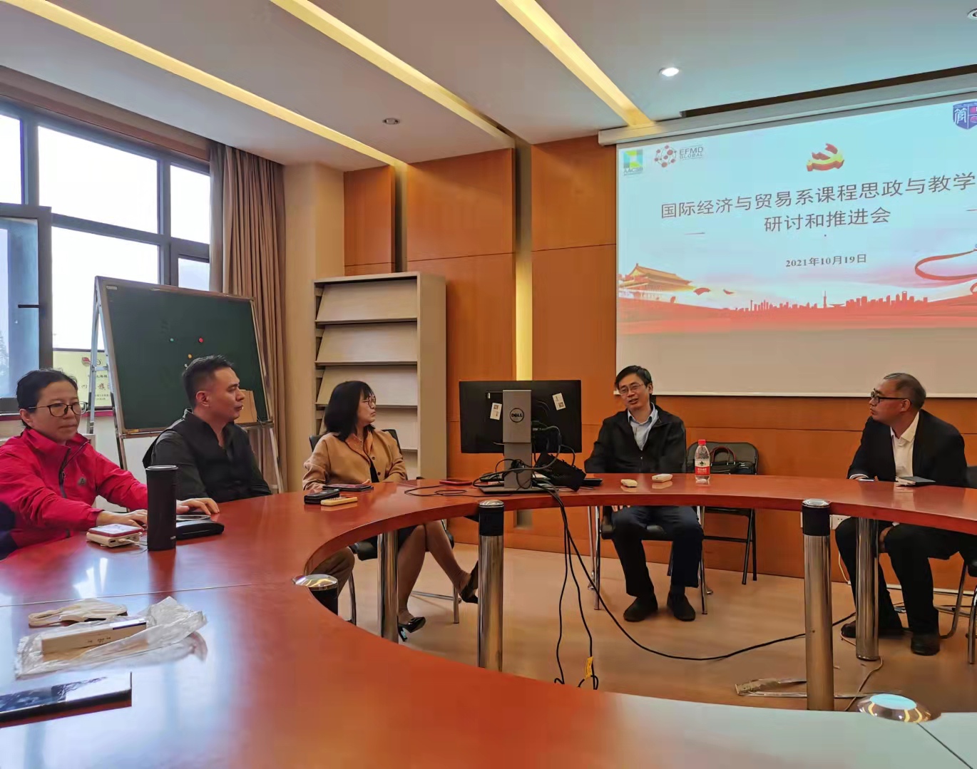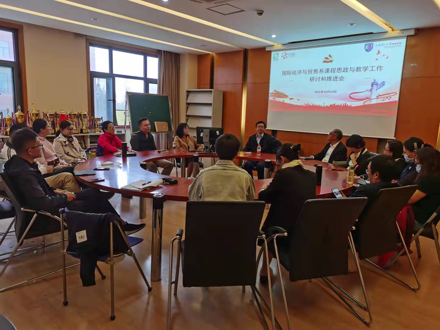 为了提升立德树人成效,进一步提高教师对课程思政工作认识,推进“课程思政”教学改革与建设工作,10月19日,国际经济与贸易系召开了课程思政建设与课堂教学融合专题研讨会。本次会议邀请了马克思主义学院徐水华副教授做专题分享与交流,国贸系主任罗芳教授、副主任秦炳涛副教授、党支部书记何文老师以及国贸系全体教师出席并参加了会议。