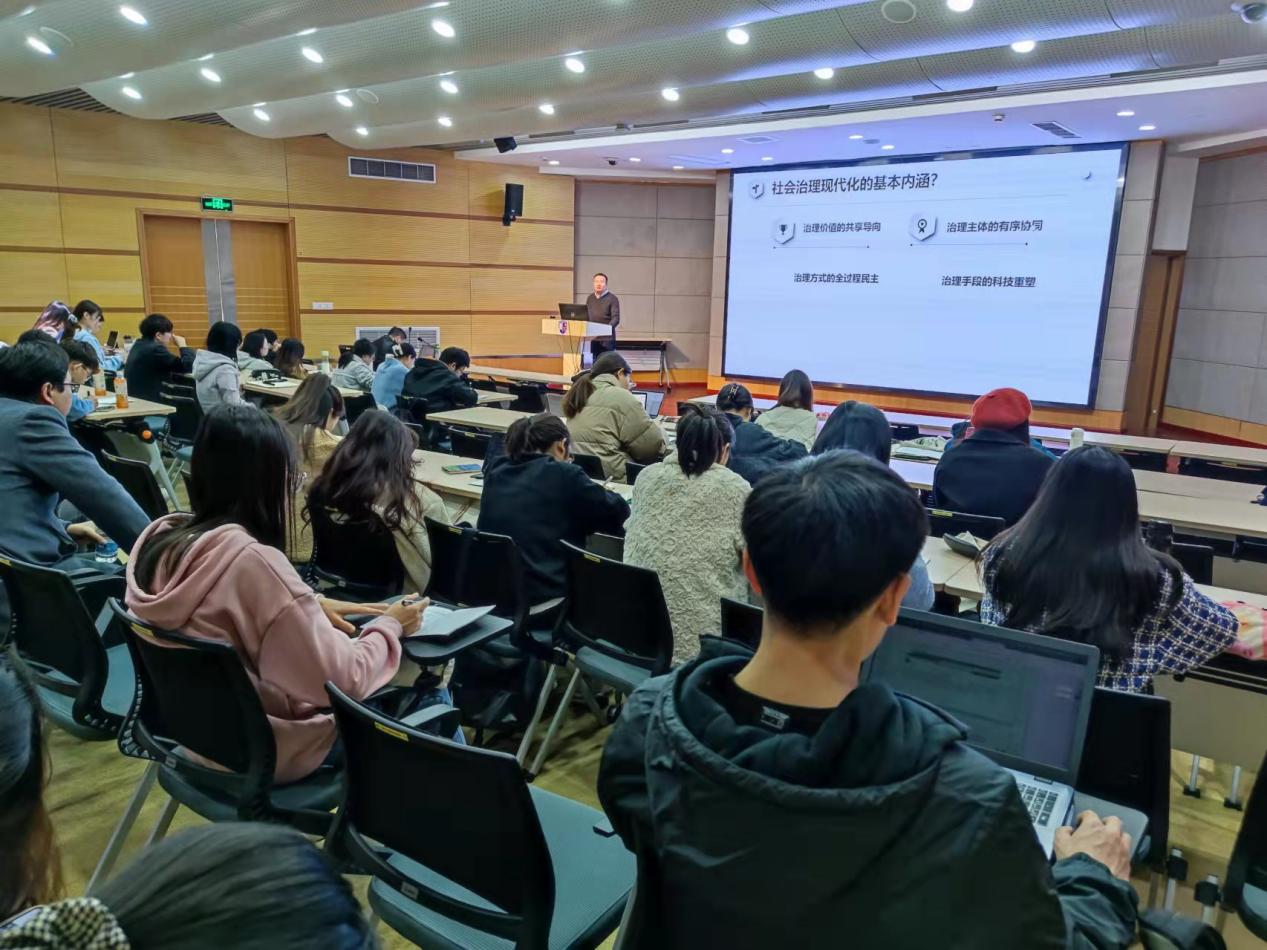 余敏江教授进行了题为“超越杰文斯悖论:碳中和议题实现的社会治理驱动及其优化逻辑”的演讲。首先,余敏江教授分析了习近平总书记以及党和政府工作报告中关于碳排放的相关指示,让大家深刻的体会到了“碳中和”在国家发展中的政治话语分量。随后,介绍了“杰文斯悖论”以及社会治理现代化的基本内涵,引出技术进步能否解决碳排放这一“灵魂之问”,并在此问题基础上引出 “碳中和”议题实现的社会治理驱动逻辑——“碳中和”硬嵌入和“碳中和”软嵌入。最后,余敏江教授与在座同学针对“碳中和”社会治理问题进行了交流互动。