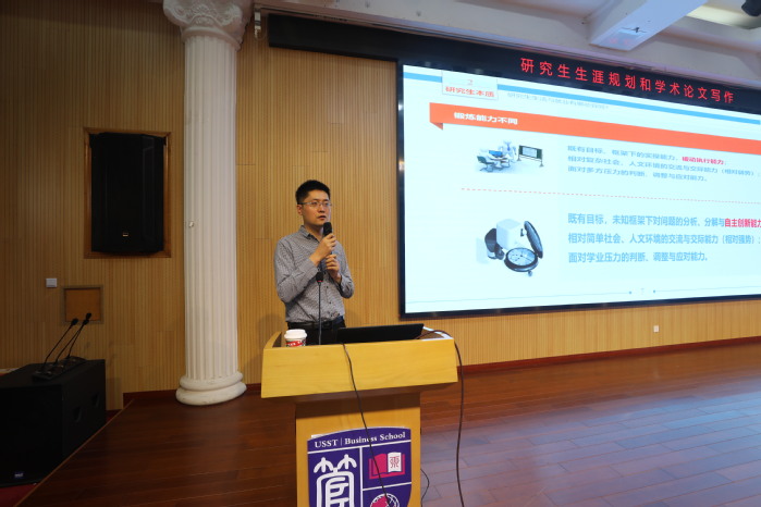 11月30日,在经管大楼A楼五楼第一会议室报告厅举办了“研究生生涯规划与学术论文写作”专题讲座。讲座由管理学院副院长张永庆教授主持,工业工程系主任、硕士生导师刘勤明副教授主讲,来自管理科学与工程、应用经济学、工商管理、交通运输工程、系统科学等300多名研究生聆听了讲座。