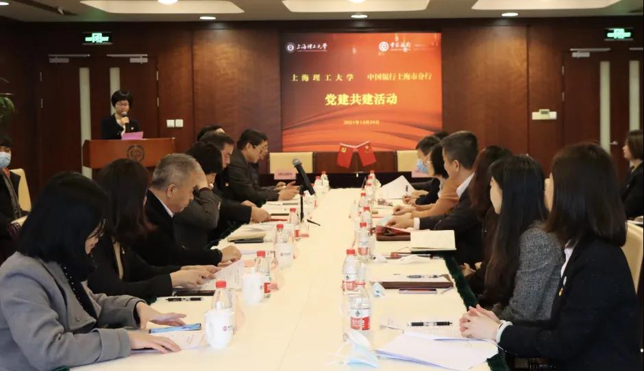 12月24日下午,管理学院党委与中国银行上海市分行在中国银行外滩大楼举行党建共建活动。中国银行上海市分行党委委员、首席业务经理、副行长项晞,中国银行上海杨浦支行党委书记、行长姜志祥等一行与上海理工大学党委副书记、副校长盛春,管理学院党政领导班子成员一行共同出席了此次党建共建活动。活动由杨浦支行党委委员、分行派驻纪检组组长郑若苹主持。