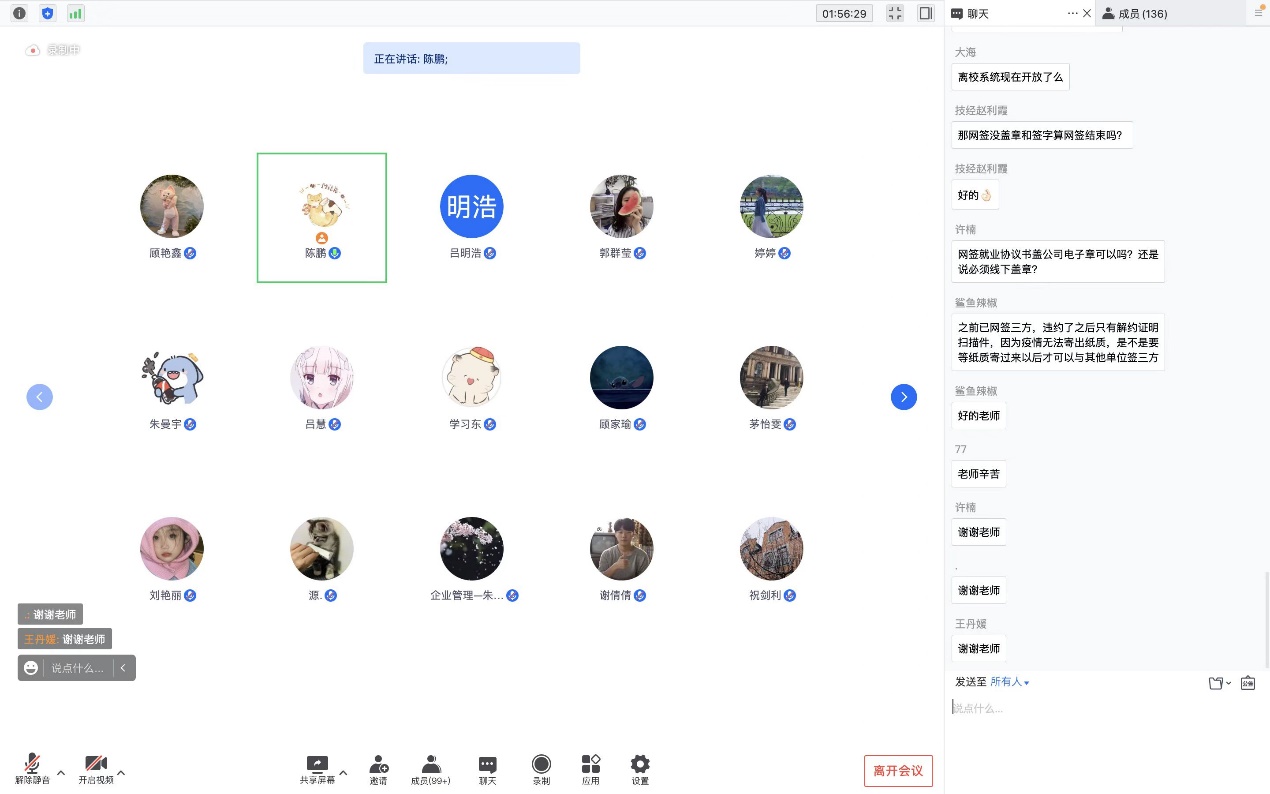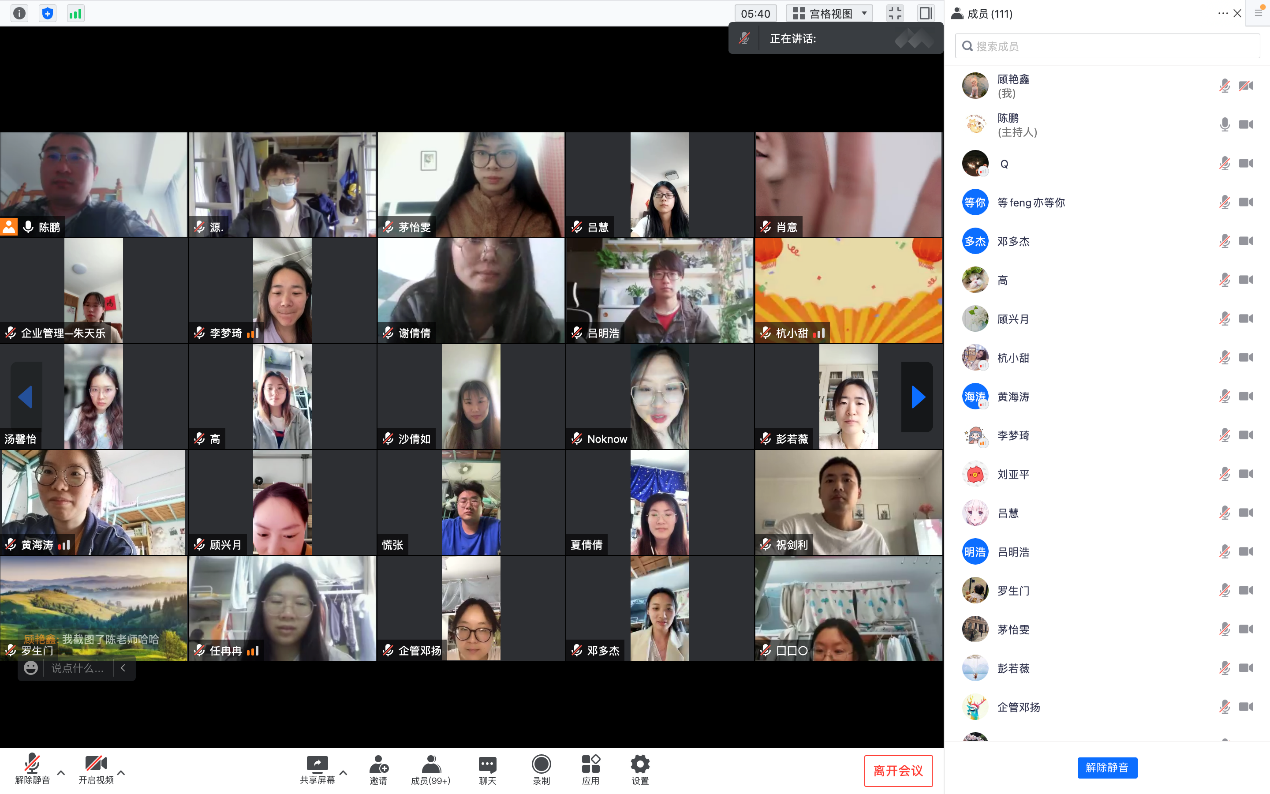 就业经验分享之后,结合目前的抗疫形势,陈鹏老师做了目前抗疫的情况介绍,并回答了同学们普遍关注的问题,通过答疑解惑的方式为同学们舒缓心理压力。鼓励同学们现阶段一定要做好积极的心理建设,增强信心,通过大家共同努力,一定能够取得抗疫战斗的最终胜利,早日恢复正常的校园生活,也一定能够找到自己理想的就业岗位,消除毕业前的最大担忧。会议全程持续了2个小时,取得了预期的成效。