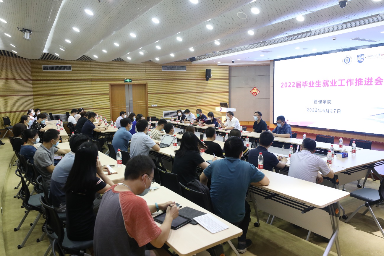 为有效推动2022届毕业生就业工作,6月27日上午,管理学院在四楼报告厅召开了2022届毕业生就业工作推进会。校党委副书记、副校长盛春出席,校学生工作部、研究生工作部负责人,学院领导班子,一级学科带头人,各系、各专业负责人及毕业班辅导员参加了此次推进会。会议由学院党委书记汪维主持。