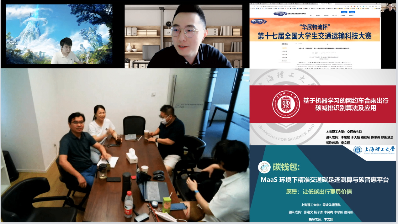 我校于今年3月18日-4月22日举办了第十七届全国大学生交通运输科技大赛上海理工大学校内选拔赛,相关专业同学踊跃报名参加,经过初评,共有12组来自不同赛道的作品被推荐参加全国赛,其中管理学院交通系统工程系的本科生项目——“碳钱包:MaaS环境下精准交通碳足迹测算与碳普惠平台”(团队成员:张逸文,杨子杰,李笑梅,李慈航,唐诗航)和研究生项目——“基于机器学习的网约车合乘出行碳减排识别算法及应用”(团队成员:李媛媛,于天翔,程佳楠,陈思薇,欧阳慧洁)经过层层选拔,成功入围决赛,并在最后决赛答辩中表现优异,分别获得全国二等奖和三等奖的佳绩。