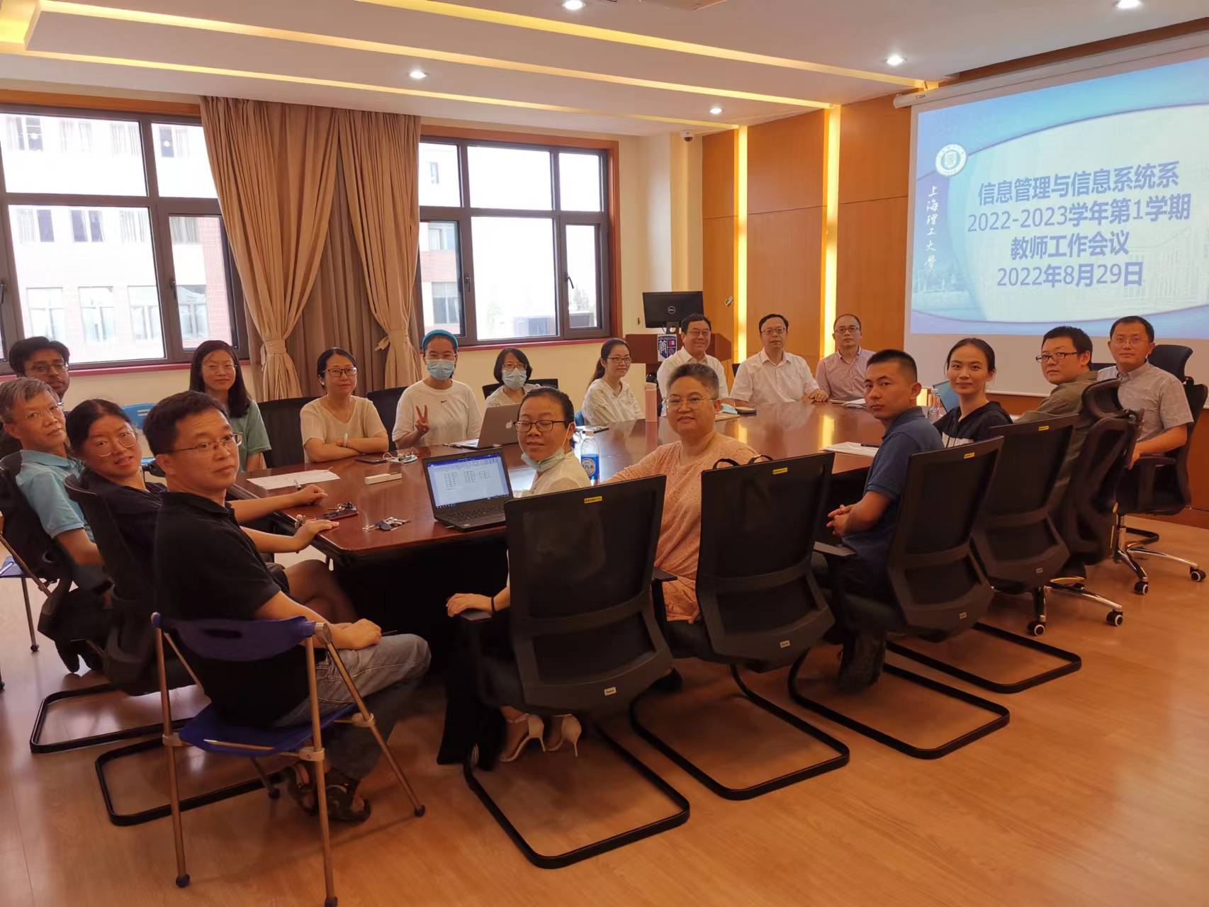 8月29日下午,信管系在管理学院A楼610会议室召开新学期工作会议。院长赵来军教授、系主任樊重俊教授、系副主任刘勇副教授、支部书记朱小栋副教授和信管系全体教师参会。