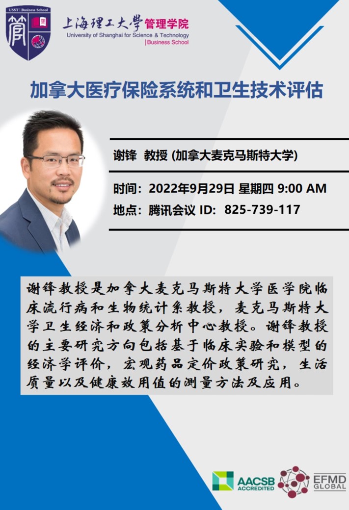 沪江经管论坛系列活动(第三十二期):加拿大医疗保险系统和卫生技术评估