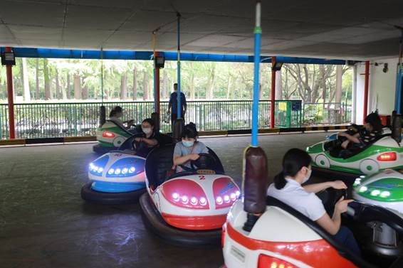 在游园活动中,大家体验了碰碰车和旋转飞椅,感受速度与激情。
