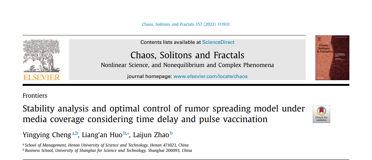 近日,我院管理科学与工程专业博士生陆续在中科院1区Top期刊《Chaos, Solitons & Fractals》上发表论文。