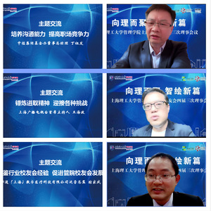 随后,中植集团基金办董事总经理、校友会副会长丁祖发,学校杰出校友、上海广播电视台首席主持人王海波,学校优秀校友、挪通(上海)数字医疗科技有限公司运营总监踪家武三位校友理事分别围绕“培养沟通能力,提高职场竞争力”、“锤炼进取精神,迎接各种挑战”、“借鉴行业校友会经验,促进管院校友会发展”进行了主题交流,他们在发言中提到沟通能力在职场上就是竞争力,要从设置沟通课程、搭建展示交流平台、建立校企实习基地等方面培养沟通能力;优秀人才要掌握社会需要的新知识,提高管理时间的能力;要多方融合,从品牌提升、行业专业企业三者链接及联动等方面推动校友会建设和发展。其他校友理事也纷纷发表了自己在学校人才培养、行业及产业发展、校企协作、校友会建设等方面的真知灼见。