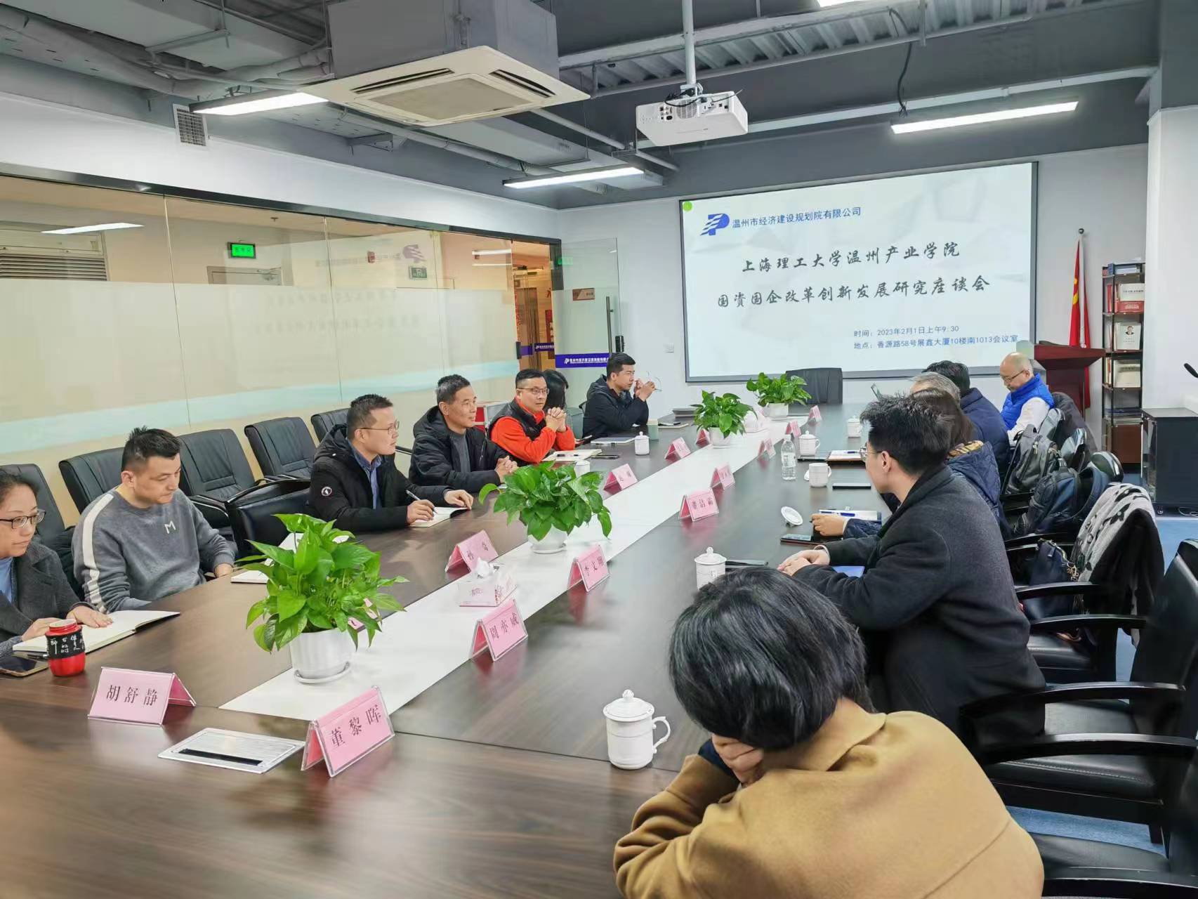 为深入推进产业学院建设,2月1日,我院教师张永庆、董洁霜、刘魏巍、李文翔、周亦威等一行人赴温州市经济建设规划院进一步探讨产业学院建设与发展相关事项,并就国资国企改革及新成立的温州市国资国企改革发展研究院建设发展问题,进行了深入系统的交流研讨。温州市经济建设规划院赵曦院长、张引峰副院长、李一曼副院长及主要技术骨干参加了座谈交流。此前,我院于2021年7月17日与温州市经济建设规划院签署战略合作协议,正式成立了上海理工大学温州产业学院。