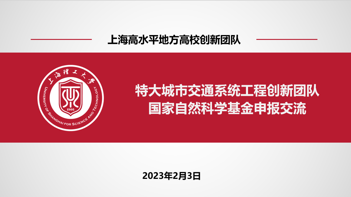 2023年2月3日下午,管理学院管理科学与工程学科特大城市交通系统工程创新团队召开了国家自然科学基金申报交流会。会议由团队负责人赵靖教授主持,创新团队成员积极参与。
