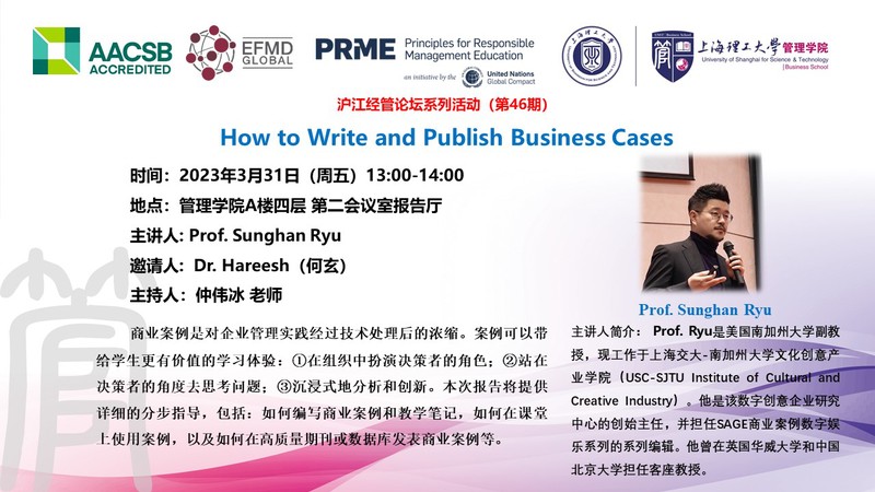 沪江经管论坛系列活动(第46期):How to Write and Publish Business Cases