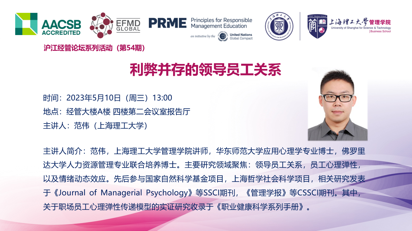 沪江经管论坛系列活动(第54期):利弊并存的领导员工关系