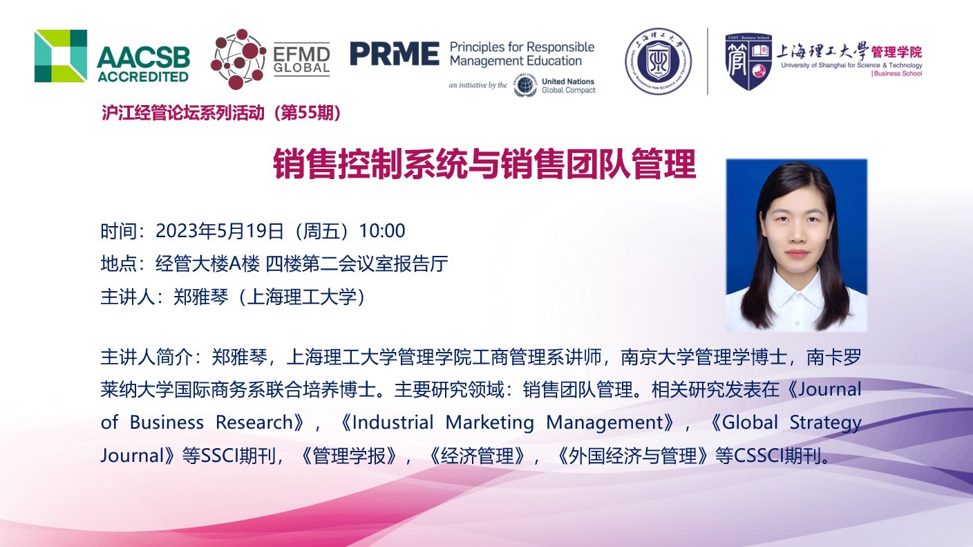 沪江经管论坛系列活动(第55期):销售控制系统与销售团队管理
