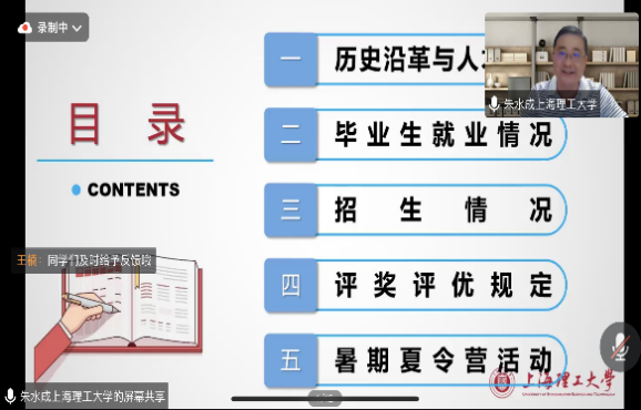 王楠在总结中认为,上海理工大学公共管理学科点的招生宣讲清晰明了,干货多多,有助于同学们了解上海理工大学的学科优势,重新认识自己的专业,进一步明确考研的方向。在交流互动环节,同学们表示通过此次宣讲深入了解了上海理工大学公共管理硕士招生相关信息,树立了报考信心,对夏令营产生了浓厚的兴趣。
