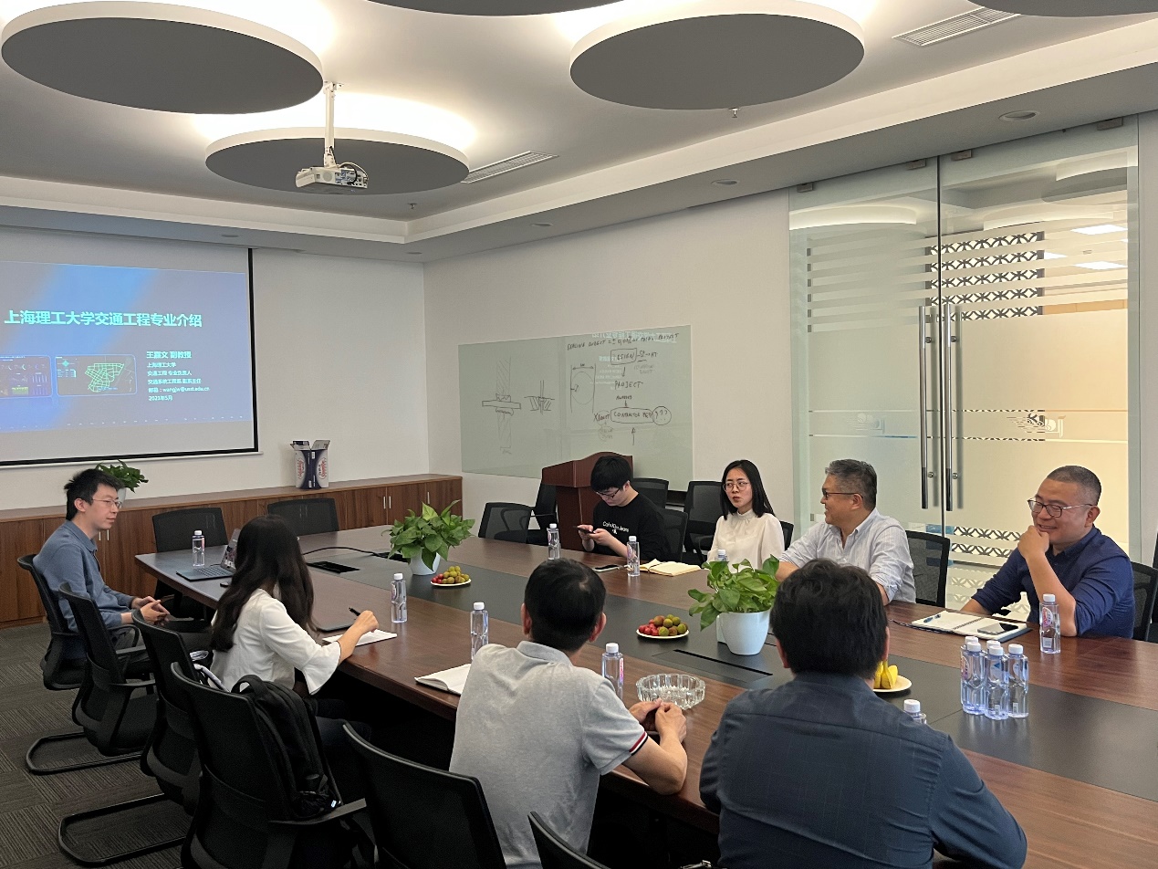 最后,双方就交通工程专业毕业生的毕业设计和就业情况、交通建设未来发展、新技术对未来交通的影响等话题进行了深入交流。作为上海理工大学的实践基地,双方还深入讨论了如何从联合指导毕设、短学期课程讲座、提供学生实践项目和场地等角度开展深入合作,力争打造产学研结合的“示范区”。本次访企拓岗调研,在共叙校友情的同时,对扎实推进交通工程专业毕业生就业、及时了解企业人才需求、合理进行培养方案修订都提供了助力。