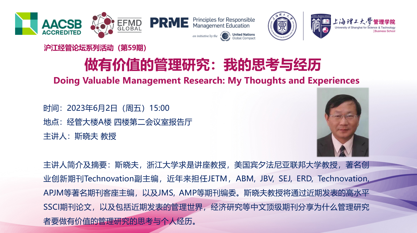 沪江经管论坛系列活动(第59期):做有价值的管理研究:我的思考与经历