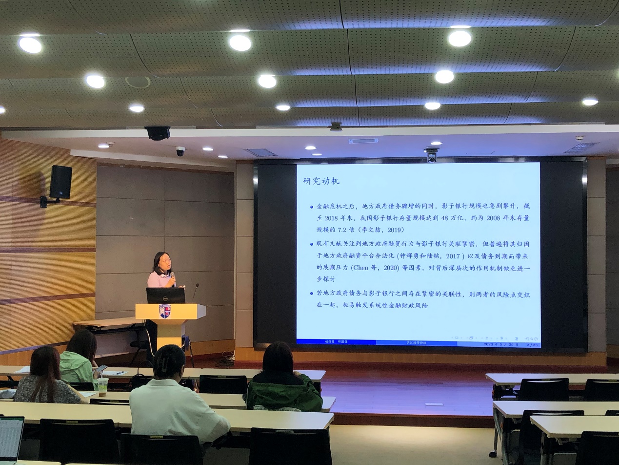 5月29日,沪江经管论坛系列活动(第58期)之青年学术沙龙在经管大楼A楼四楼第二会议室报告厅举行。金融系讲师赵旭霞作题为 “地方政府债务扩张、杠杆率监管压力与影子银行” 的学术报告,报告由金融系副教授徐佳文主持并点评。