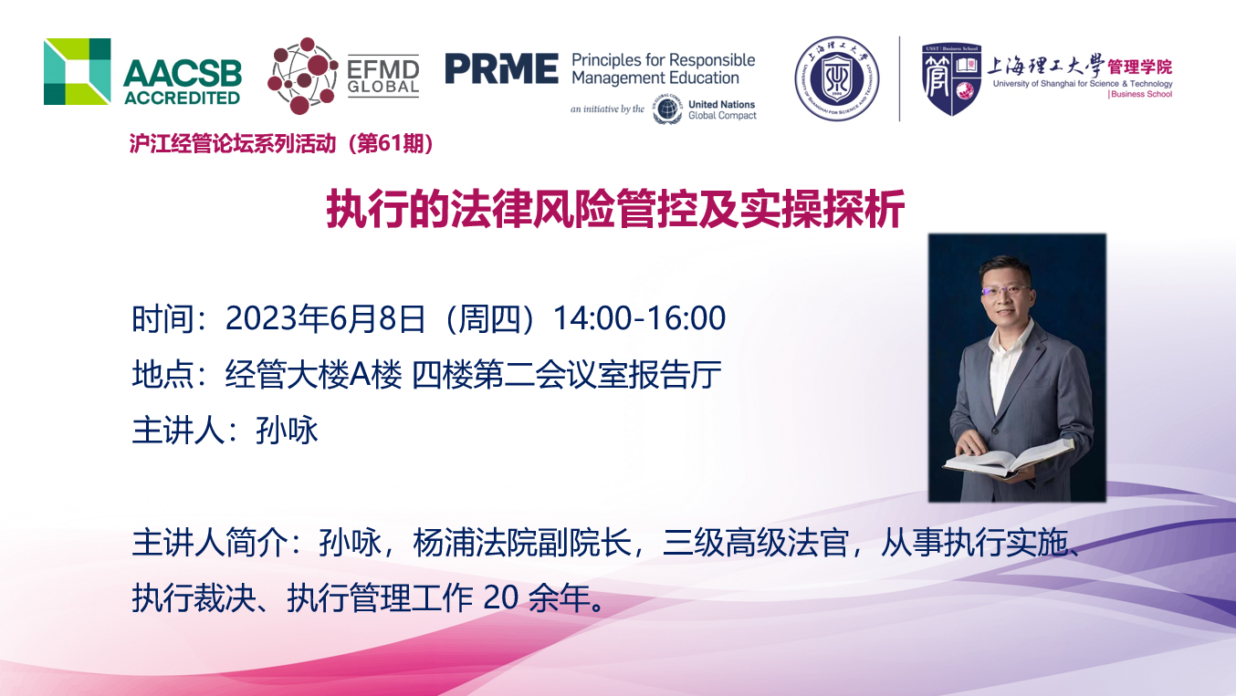 沪江经管论坛系列活动(第61期):执行的法律风险管控及实操探析