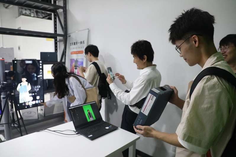 “29.9的坚果买二送一,倒计时三秒钟,上链接!”直播基地里,同学们被一位充满活力的主播吸引。这里配备了选品展示区、明星直播区、仓储直播等区域。互动环节,师生们站在镜头前,拿起商品,真实感受当主播的乐趣。