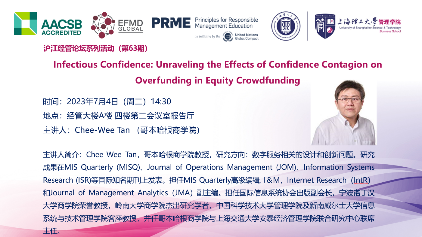 沪江经管论坛系列活动(第63期):Infectious Confidence: Unraveling the Effects of Confidence Contagion on Overfunding in Equity Crowdfunding
