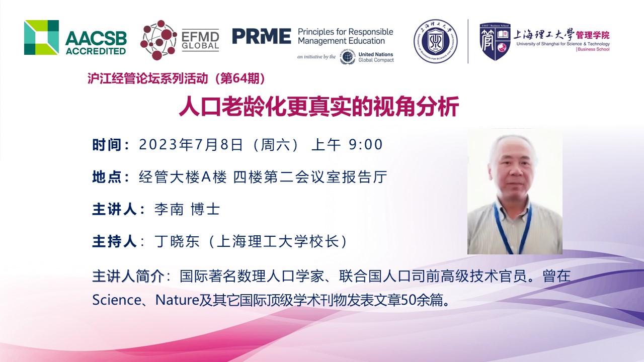 沪江经管论坛系列活动(第64期):人口老龄化更真实的视角分析