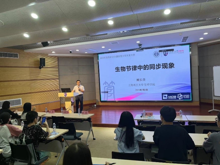 在学科学术报告环节,顾长贵向全体营员作题为《生物节律中的同步现象》的精彩报告,介绍了生物钟系统在多空间尺度下均存在同步现象,以及生物钟系统的功能由系统结构决定而不是单个神经元决定。