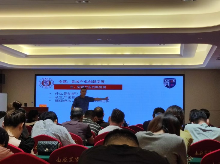 受河北省东光县政府主管部门邀请,我院区域可持续发展研究中心主任、国际经济与贸易系副主任秦炳涛副教授赴该县开展县域产业创新发展主题讲座。活动于8月11日在千盛源大酒店6楼国际会议厅举行。县商工局、市场监管局、农业局、税务局、财政局、开发区和各乡镇政府负责人,以及县内高新技术企业管理者40余位同志参加了会议。会议由县发展与改革委和科学技术局负责人李红志同志主持。