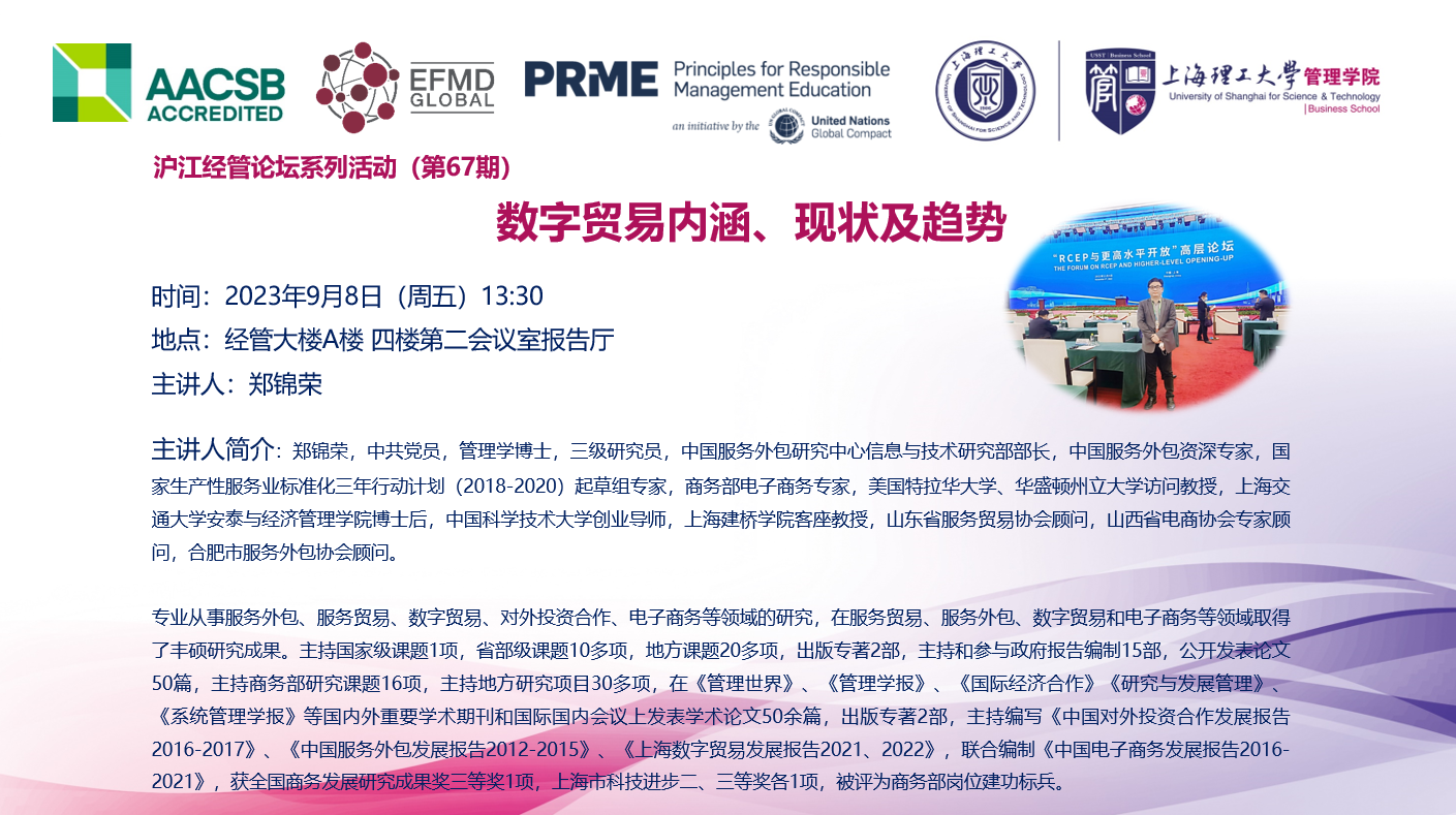 沪江经管论坛系列活动(第67期):数字贸易内涵、现状及趋势
