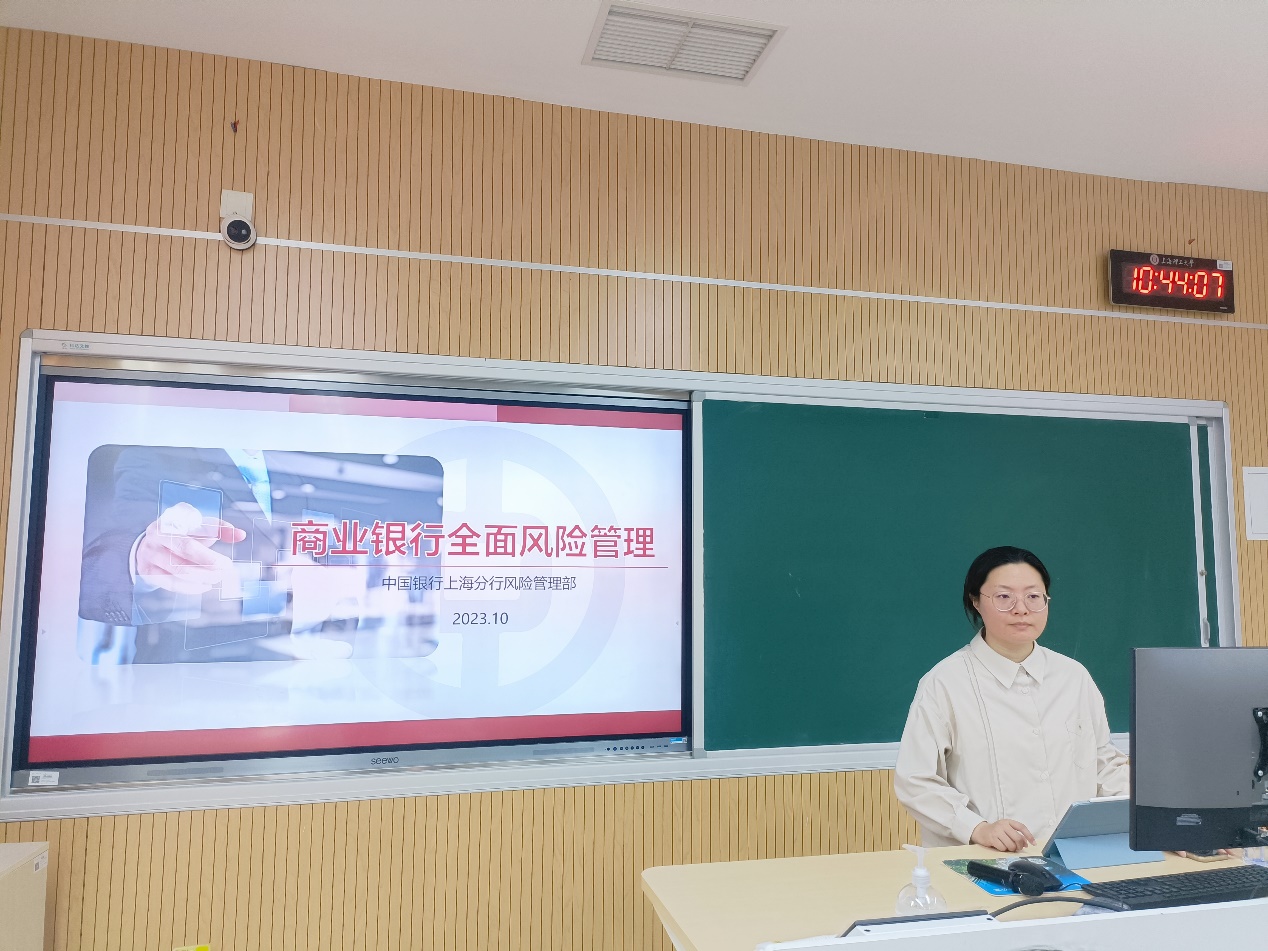 10月16日上午,中国银行上海市分行风险管理部全面风险管理团队主管虞蓉为管理学院金融专业本科生讲授《商业银行业务与经营》课程。金融系戈园婧老师及管理学院相关专业部分本科生、研究生等旁听了课程。