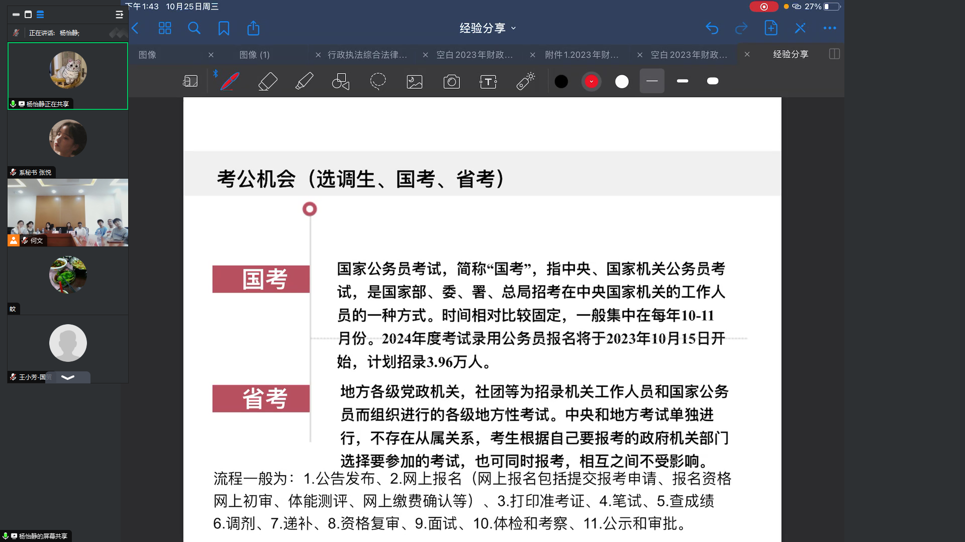 接下来四位校友嘉宾与师生们分享自己的经历与经验。张桂洋结合大学四年的心路历程,分享自己考研之路中的心得体会。谢润彬就申请国内的研究生和求职就业等方面作了发言,在深造和就业方面给同学们提出了建议。杨怡静分享了考公所需要的准备以及对目前工作的心得分享,她鼓励学弟学妹们在大学期间做好选择,找到适合自己的方向脚踏实地地努力。孙榕利建议学弟学妹好好享受大学时光,同时结合自身的留学经历给同学们提供了关于择业的建议。