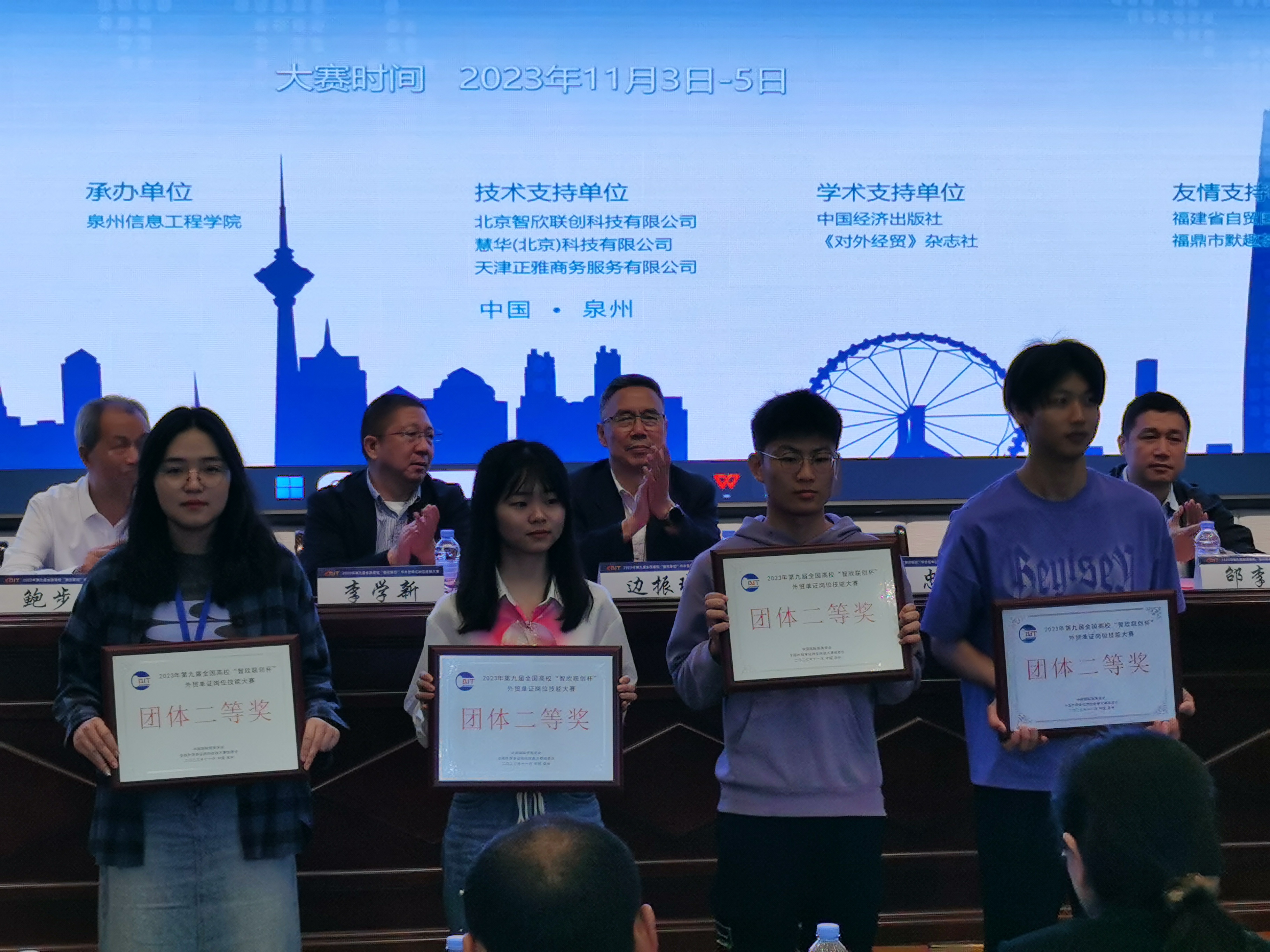 11月3日至5日,2023年第九届全国高校“智欣联创杯”外贸单证岗位技能大赛在福建省泉州市泉州信息工程学院举办。来自全国30多所院校的300余名学生参加此次竞赛,共同交流学习外贸单证的知识和技能。我院国际经济与贸易系专业教师唐俏和杨乐带领四名学生组队参赛,获得单证技能赛本科生组团体二等奖。