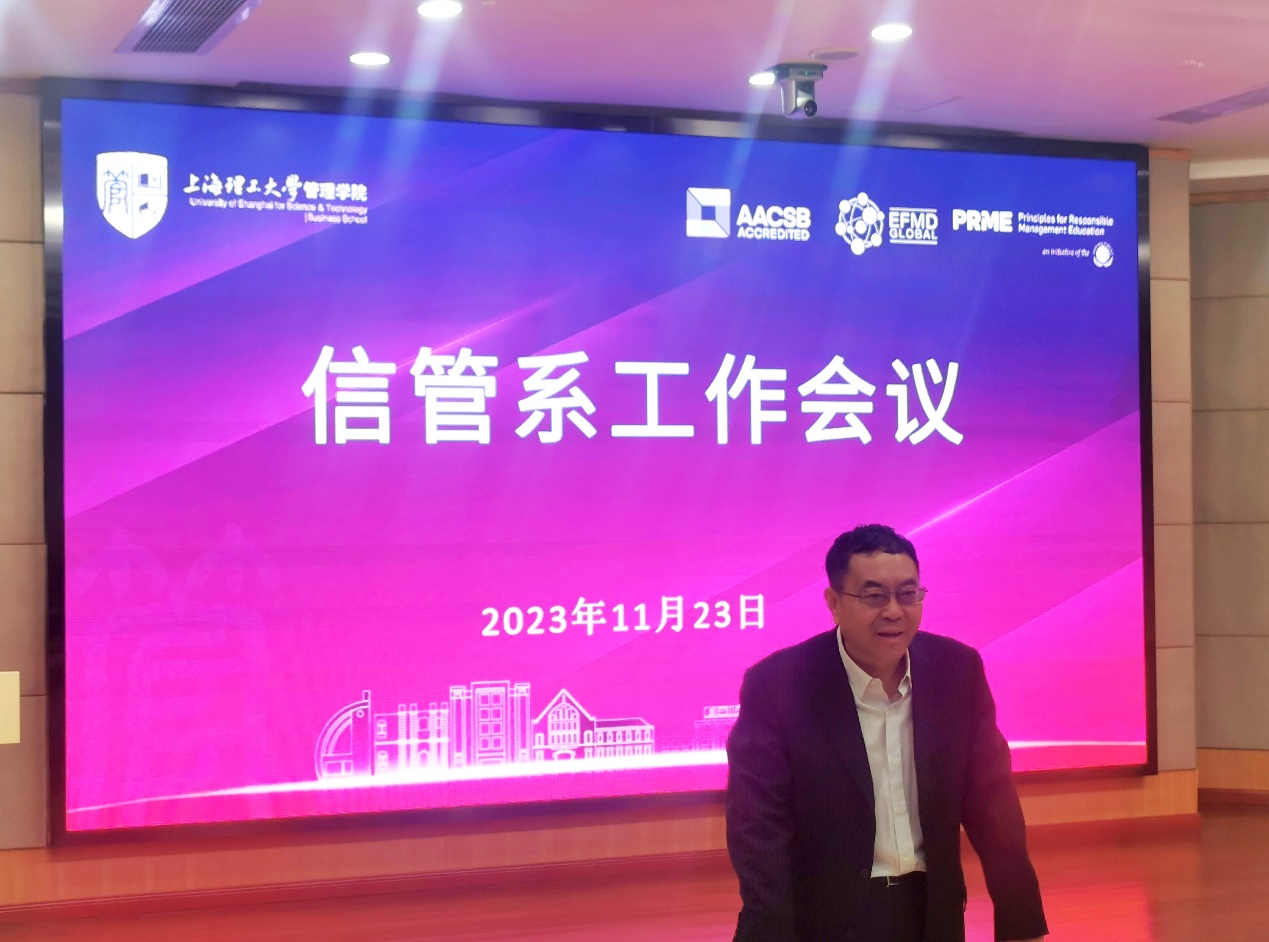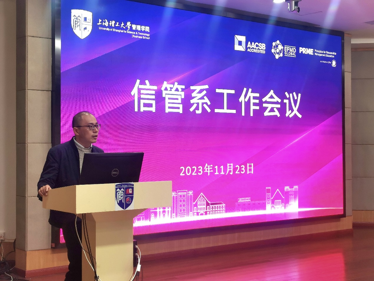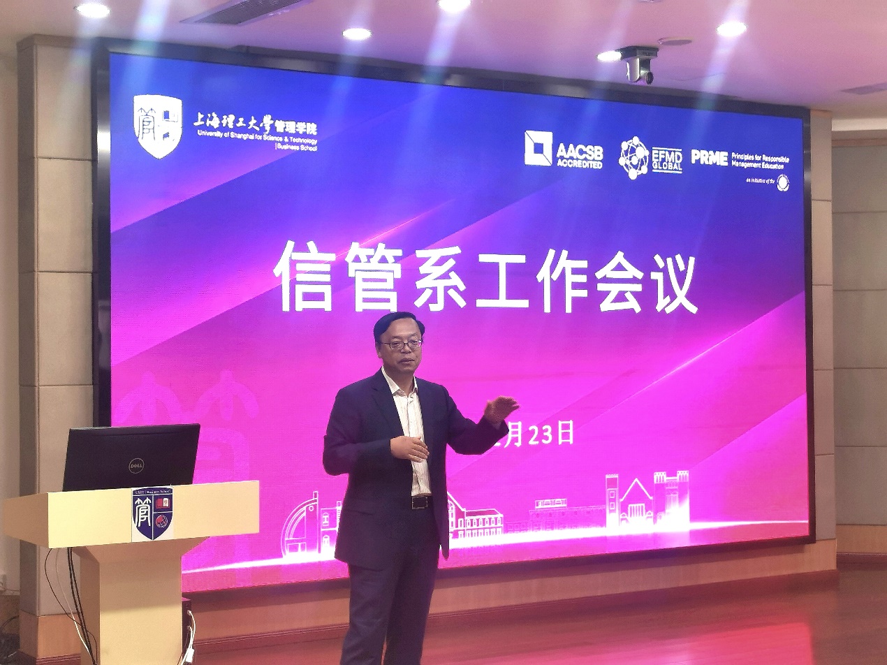 11月23日上午,信息管理与信息系统系在经管大楼A楼第二会议室报告厅召开信管系工作研讨会。管理学院院长赵来军、系主任樊重俊、系副主任刘勇以及信管系教师出席了本次会议。本次研讨会由刘勇主持。