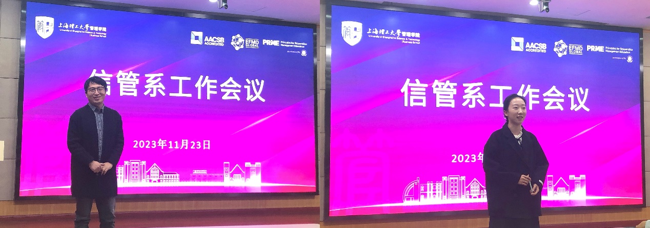 最后,刘勇介绍了新入职的周立欣和马卓羲两位教师,全体教师热烈欢迎新同事的到来,希望在未来的日子里大家共同协作促进信管系的发展。