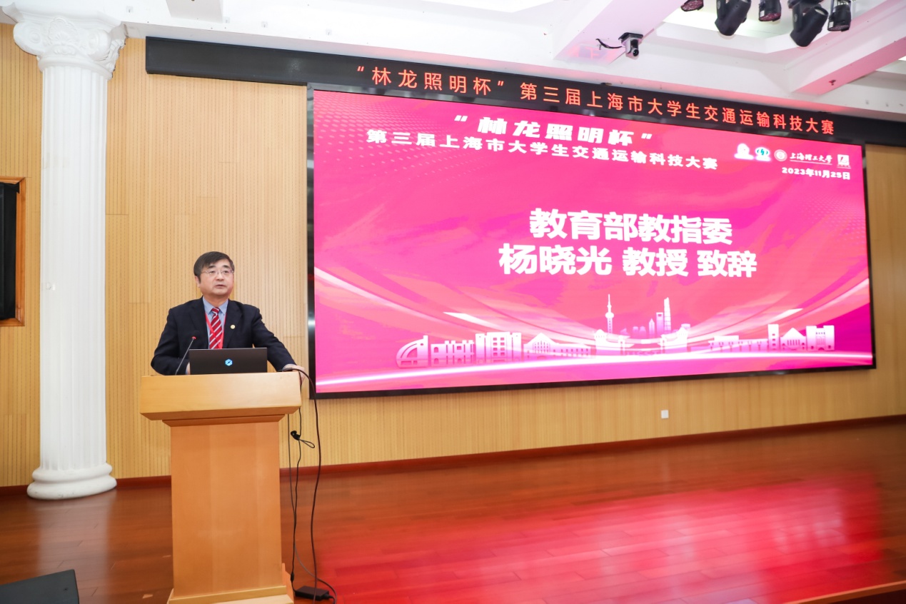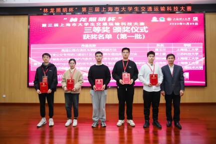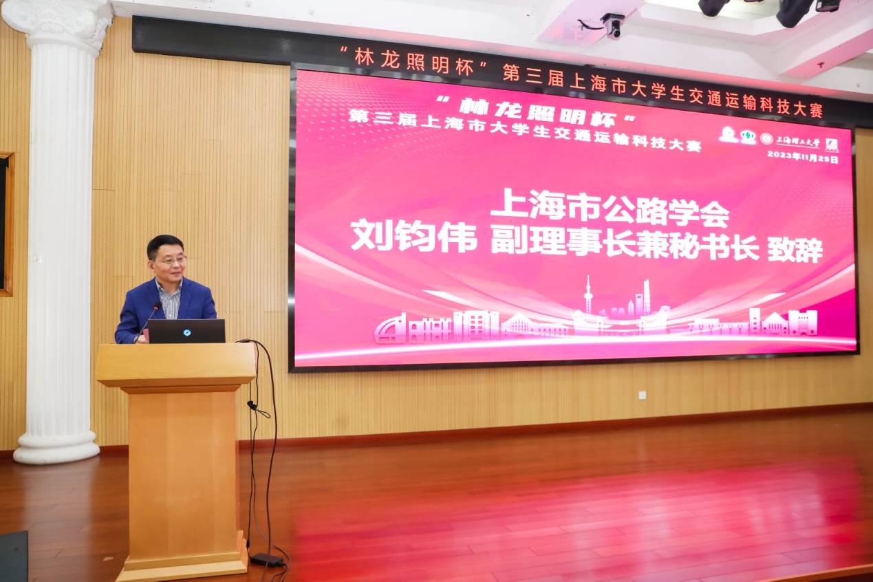 11月25日,由上海市公路学会和上海市交通工程学会主办,教育部高等学校交通运输类专业教学指导委员会专家支持,上海理工大学承办,上海林龙建设工程有限公司、上海市公路学会道路安全与环境专业委员会及道路工程专业委员会、上海市交通工程学会交通理论专委会协办的“林龙照明杯”第三届上海市大学生交通运输科技大赛决赛在乐鱼网页版举行,上海理工大学交通运输工程学科发展专题研讨会同期开展。出席决赛和会议的有来自上海市公路学会、上海市交通工程学会、同济大学、上海城建城市运营(集团)有限公司、上海市城市建设设计研究总院(集团)有限公司、上海市交通信息中心、上海市城市综合交通规划研究所、上海市上规院城市规划设计有限公司、上海城市交通设计院有限公司、等交通行业相关单位的十五位校外评审专家,乐鱼网页版院长赵来军,教师发展中心主任童元伟,交通运输工程学科带头人韩印,交通系统工程系的师生代表以及所有参赛成员。决赛开幕式由乐鱼网页版副院长赵靖主持。