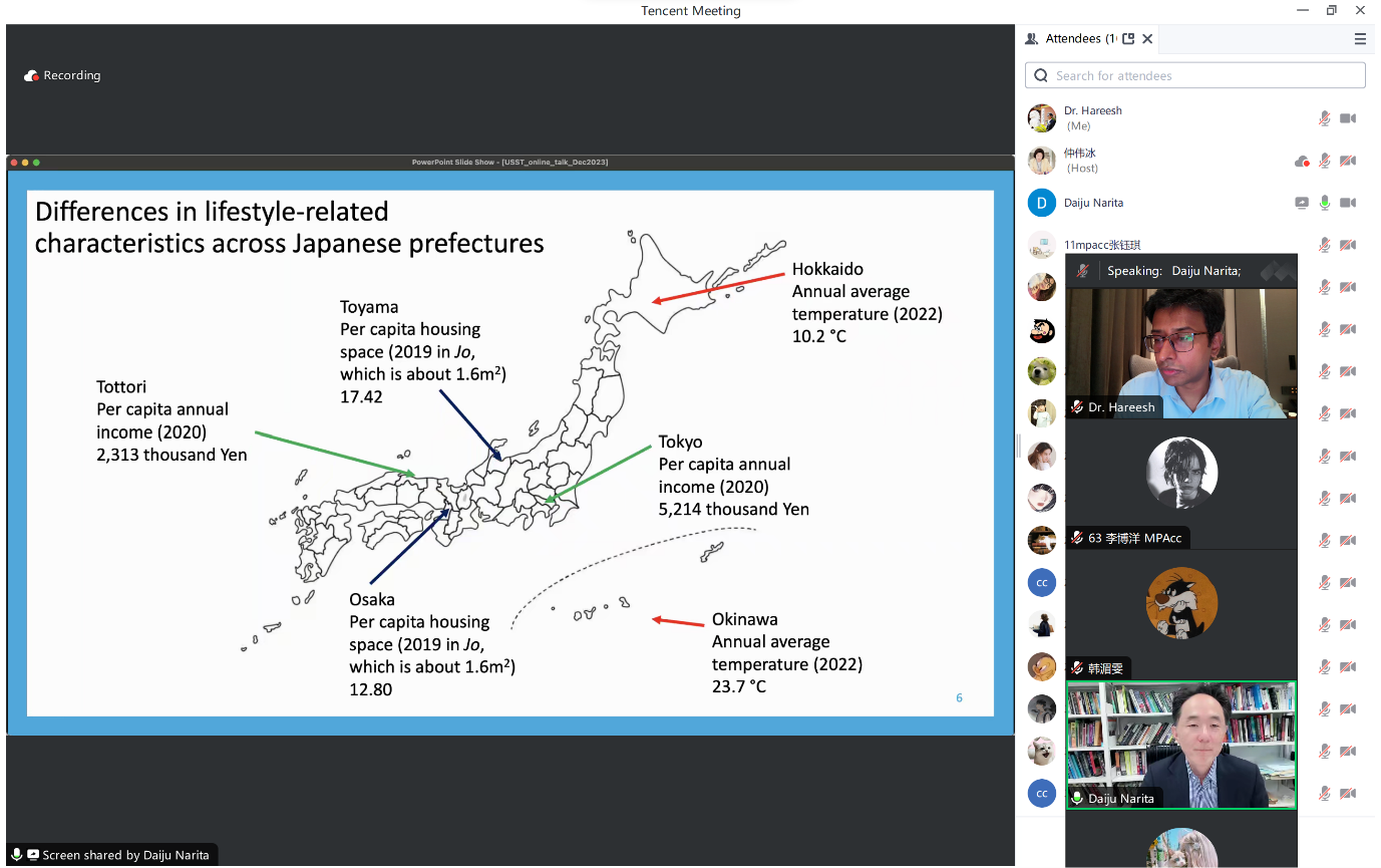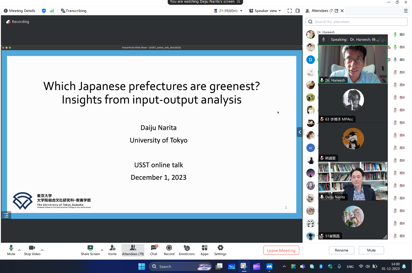 12月1日,沪江经管论坛系列活动(第77期)之青年学术沙龙在线上顺利举行。东京大学环境经济学家成田大寿教授作题为“日本哪些县最环保?来自投入产出分析(I-O)的见解”的学术报告。报告由乐鱼网页版Hareesh博士主持,近百名师生参加了报告。