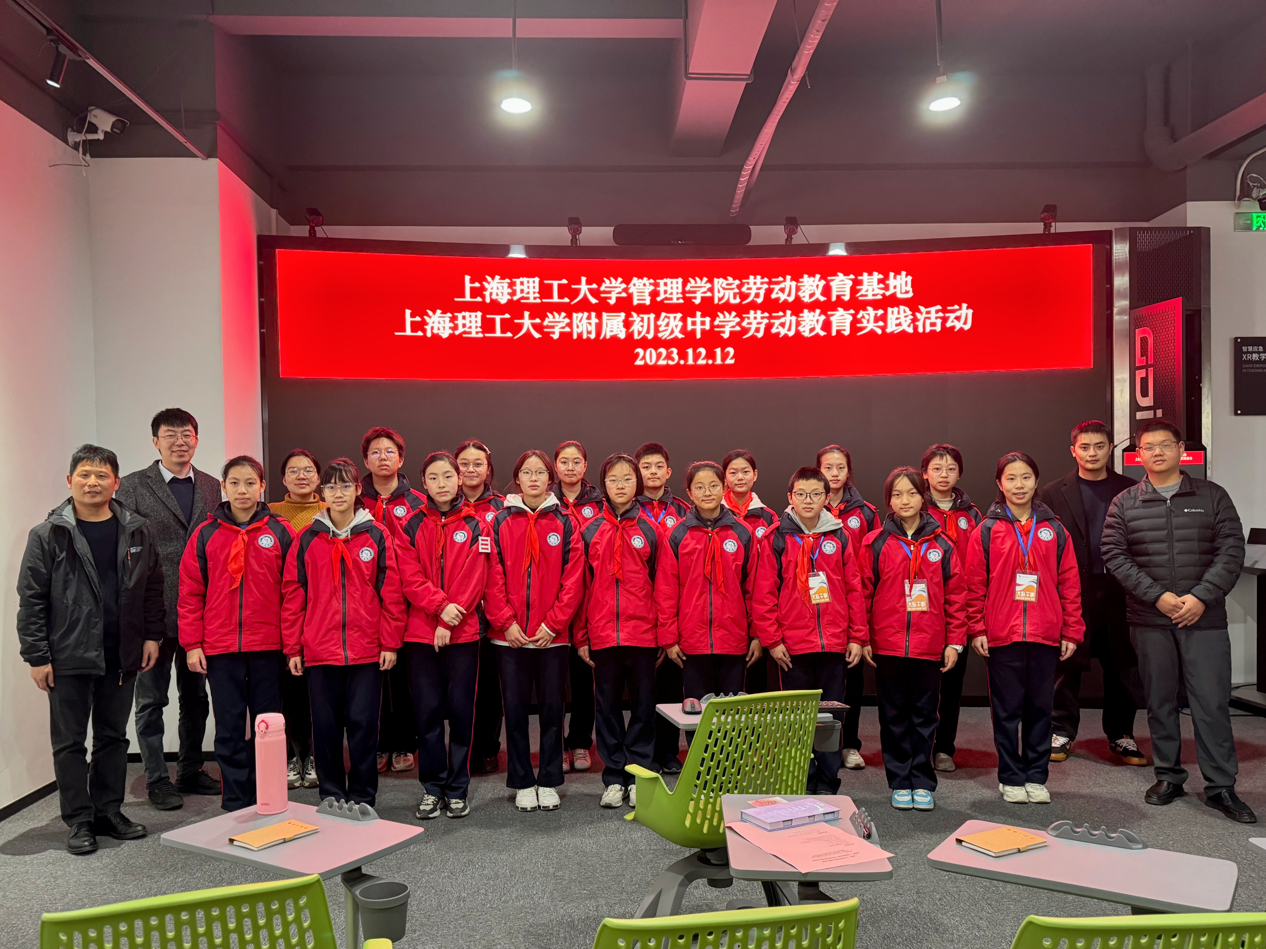 12月12日下午,上海理工大学附属初级中学学生来我校交通系统工程实验室以及智慧应急管理实验室开展实践活动。管理学院作为杨浦区劳动教育实践基地承办此次活动。上理附属初中德育主任孙海英、大队辅导员浦文瑜、16名优秀初中生学生干部,智慧应急管理学院学术秘书黄中意、实验室建设秘书李季明参加活动。活动由管理学院劳动教育实践基地负责人王嘉文主持。
