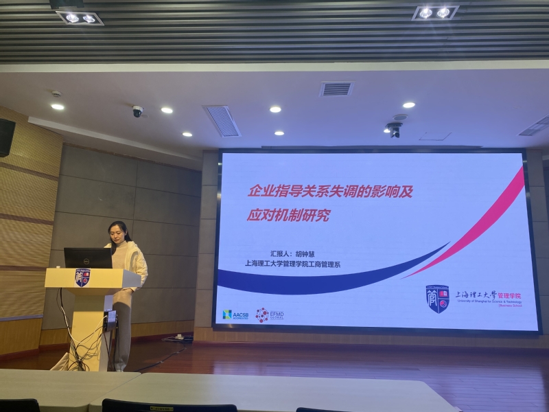 12月12日,沪江经管论坛系列活动(第79期)之青年学术沙龙在经管大楼A楼四楼第二会议室报告厅举行。工商管理系讲师胡钟慧作题为“企业指导关系失调的影响及应对机制研究”的学术报告。40余名师生参加了此次报告。