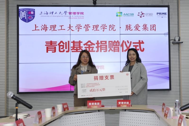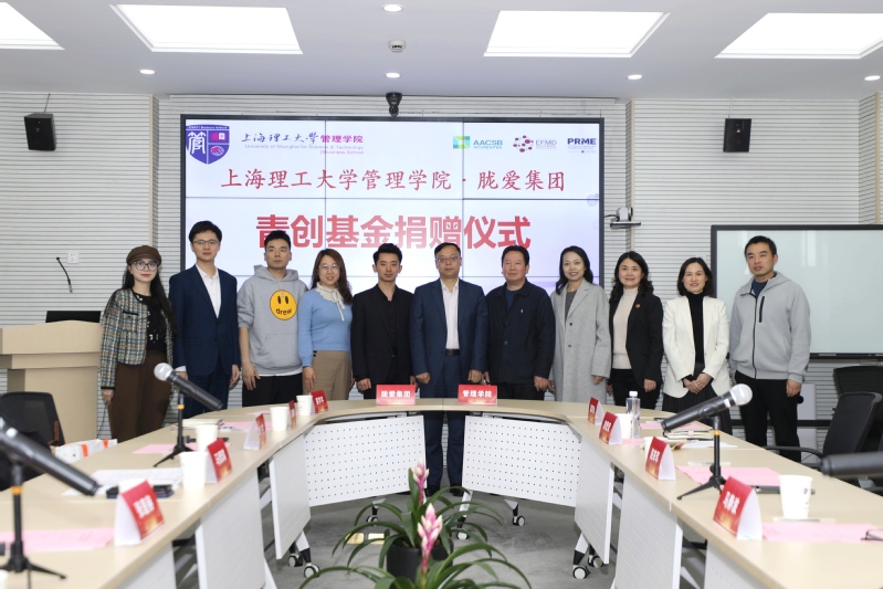 12月14日下午,胧爱集团“青创基金”捐赠仪式在管理学院506会议室举行,胧爱集团总裁、上海庭赫信息科技有限公司总经理张庭赫,胧爱集团常务副总裁马偲琪、联合创始人刘宇,管理学院党委书记马静波、院长赵来军,校友联络处副处长司徒唯尔及校企双方相关代表出席会议。会议由管理学院党委副书记蒲莹莹主持。