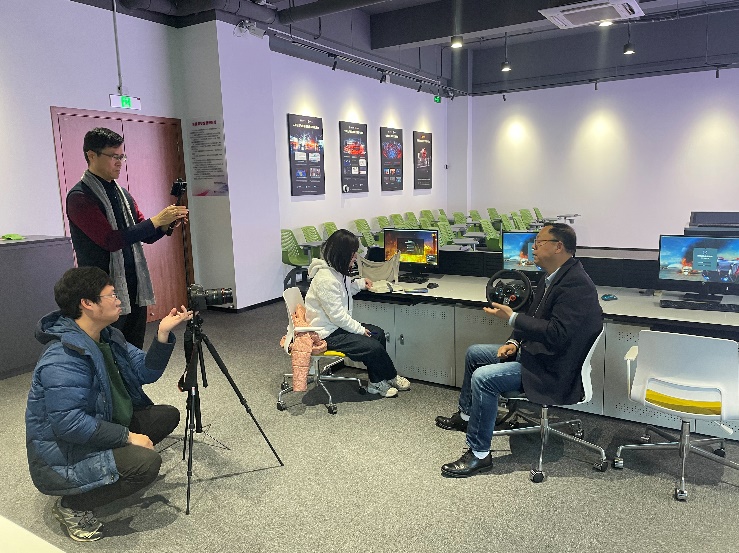 随后,赵来军在智慧应急管理实验室接受《上海安全生产》杂志的专访。他从科技赋能安全生产、与上海市应急管理局共建等角度介绍了智慧应急管理学院的使命和工作内容,并展示了虚拟现实科普平台、建筑智慧消防系统演示平台、智慧疏散指示系统、可编辑VR疏散实验平台等智慧应急管理学院自研的科普、科研系统。