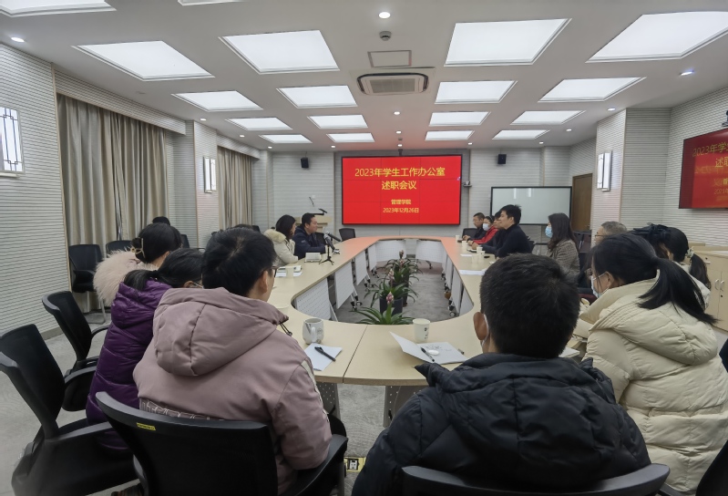 12月26日上午,管理学院在五楼会议室举行2023年学生工作述职会议,学院党委书记马静波、党委副书记蒲莹莹以及全体辅导员出席。