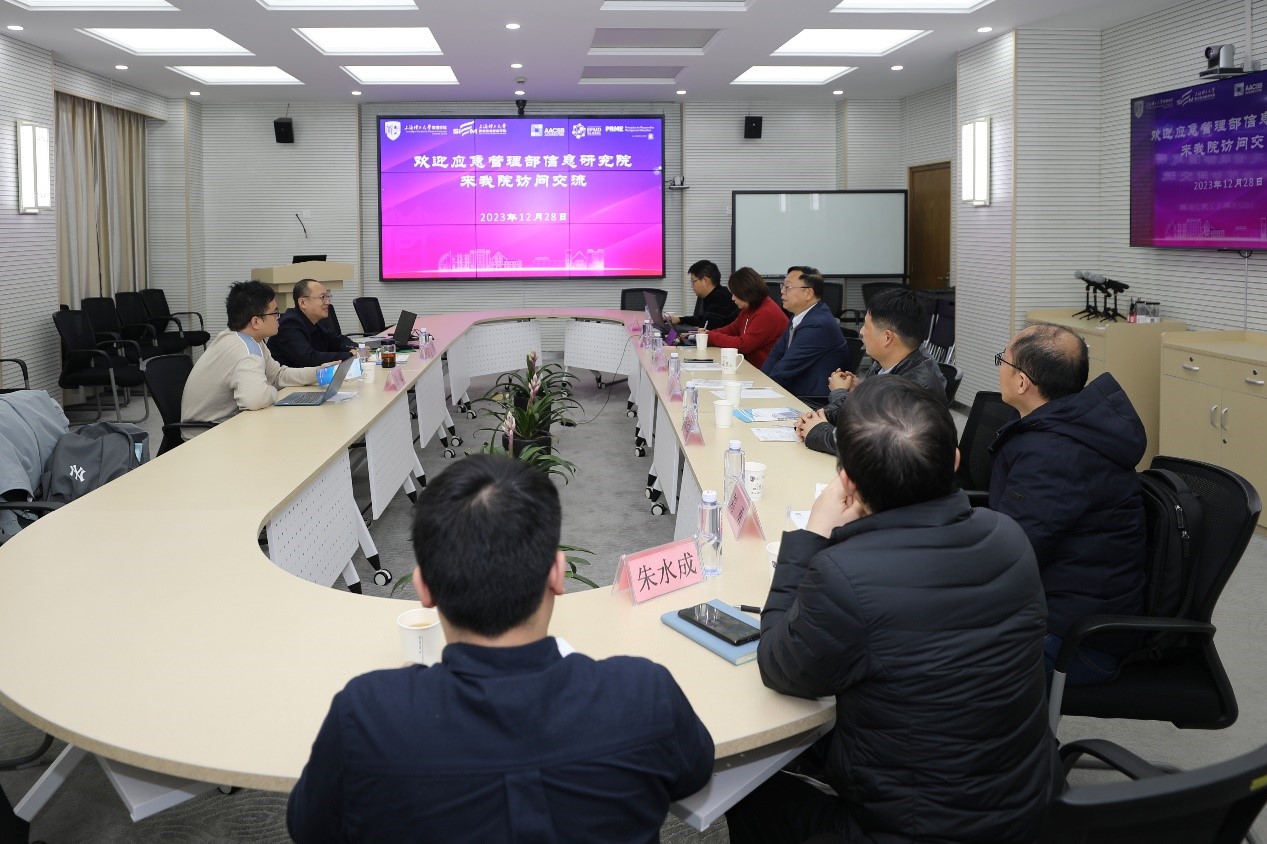 12月28日,应急管理部信息研究院信息资源部主任孙超、信息资源部高级工程师程镱来学院调研交流。