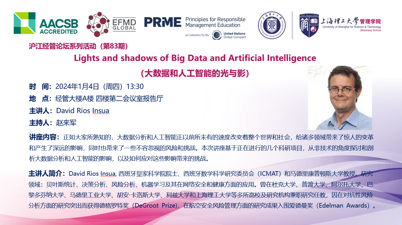 沪江经管论坛系列活动(第83期):Lights and shadows of Big Data and Artificial Intelligence